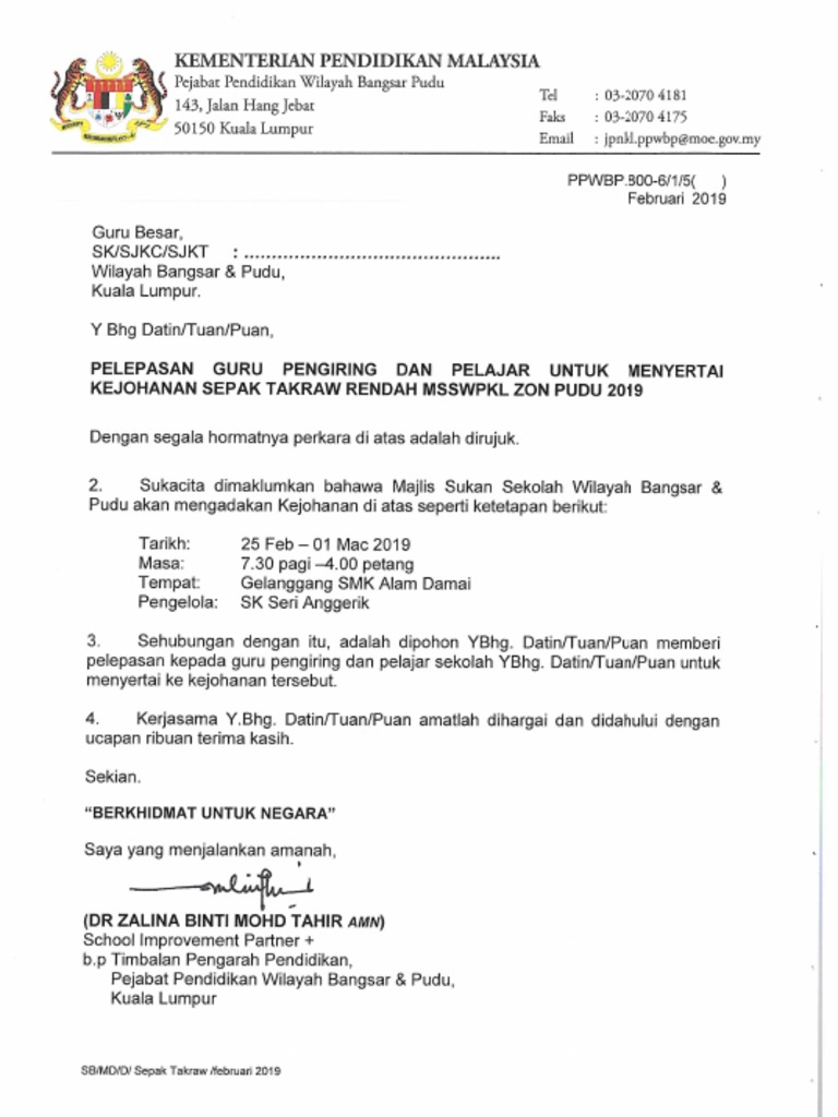 Anakjagaan saya tidak dapat hadir ke sekolah pada tarikh tersebut. Sabtu 11 Mei 2017 Waktu. Contoh Surat Salahlaku Disiplin.